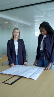 Travail sur le plan d’implantation avec une collègue