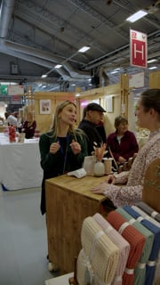 Discussion avec une cliente sur la foire